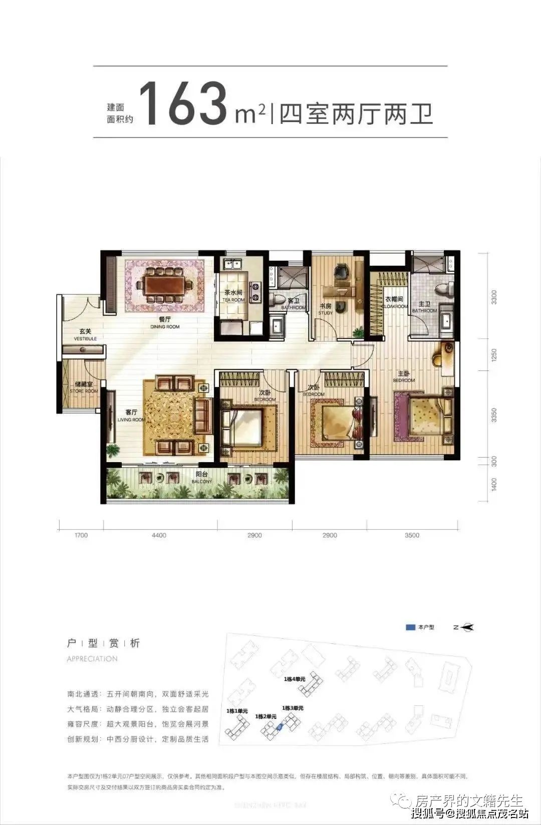 目前在售建面42-163㎡户型,价格230-870万