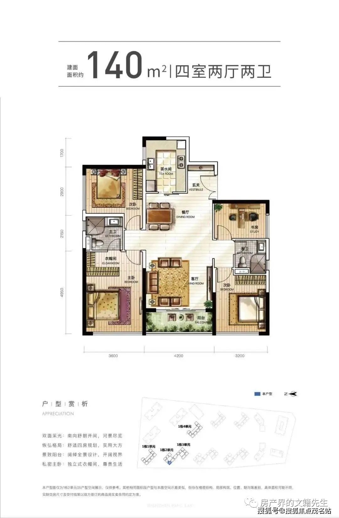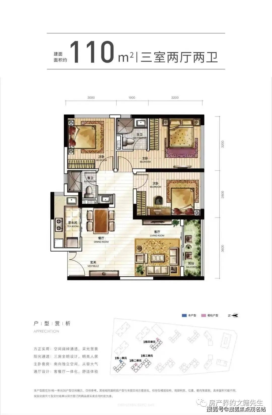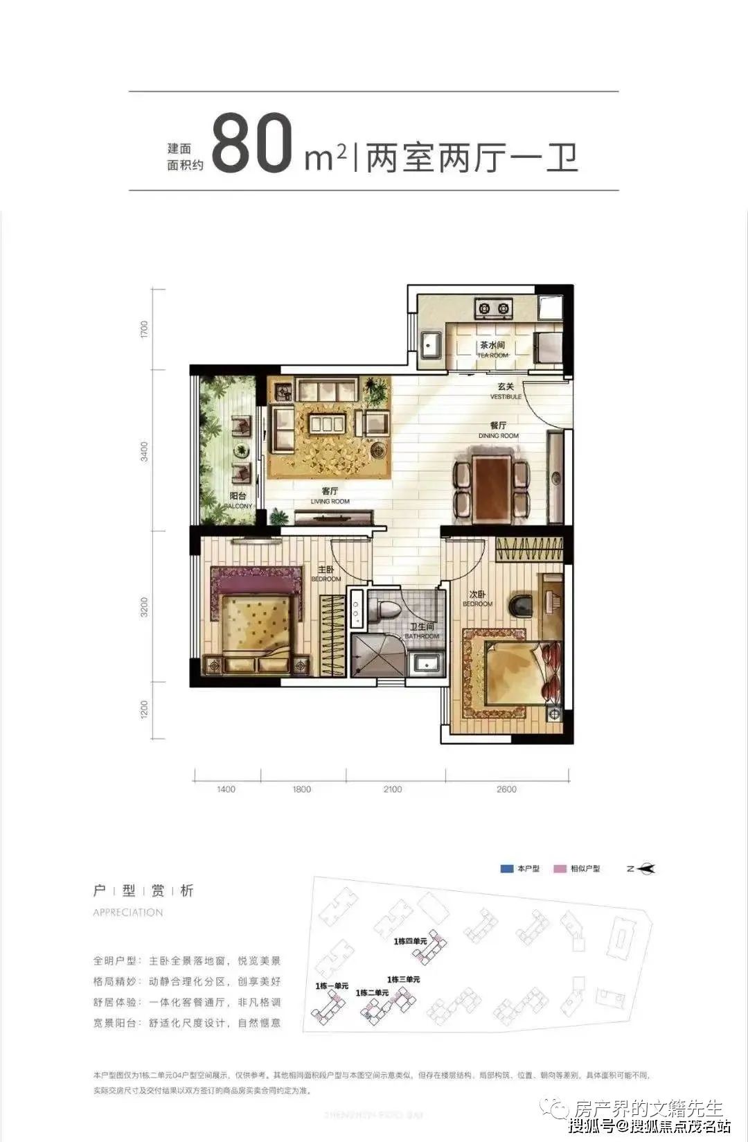 楼层说明:4个单元的商务公寓,1栋一/四单元31层,1栋二单元/三单元32层