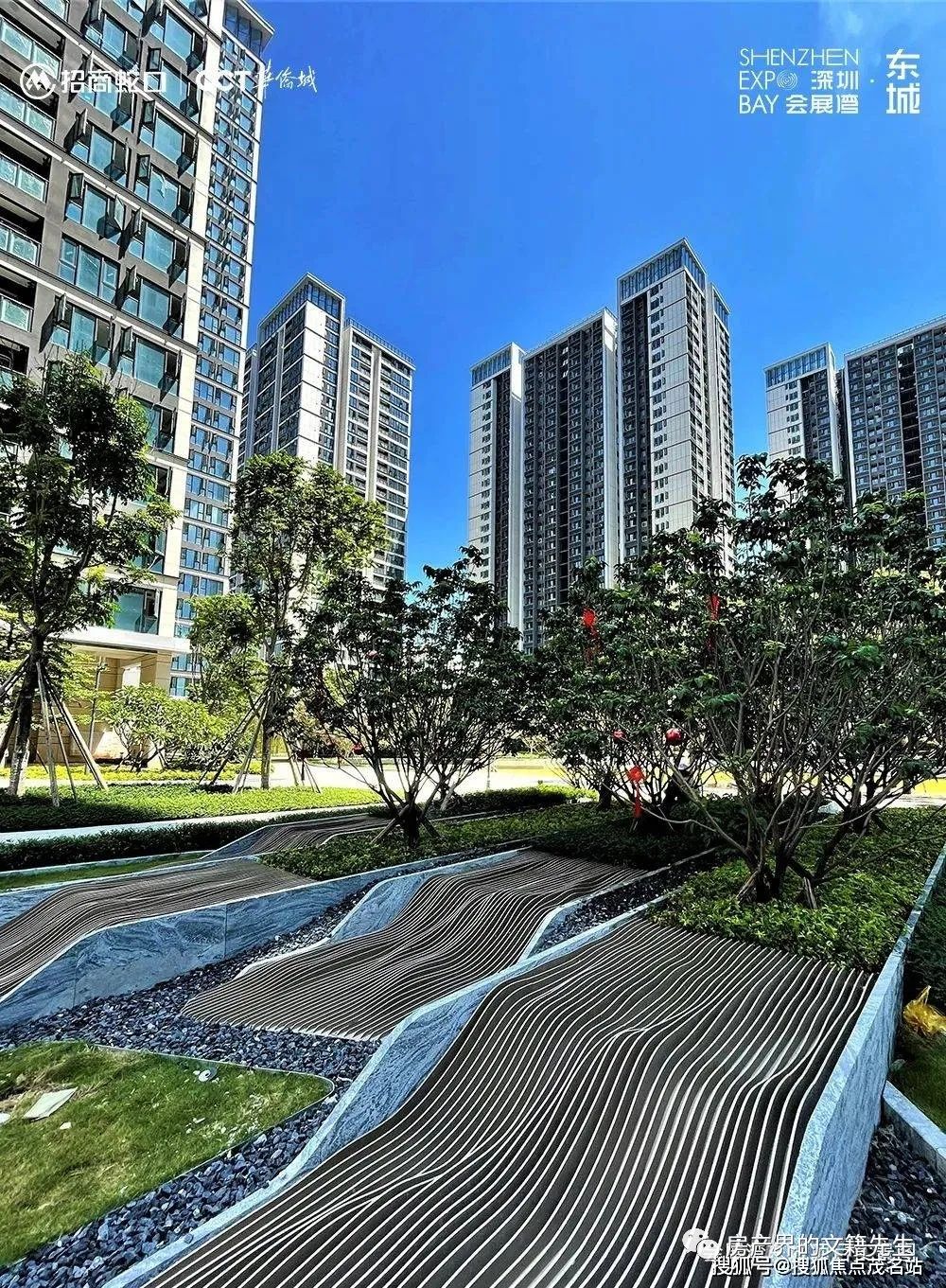会展湾·东城,得益于所在地段周边河流交错、水系发达,由美国SWA团队担任园林设计,对标谷歌总部、深圳湾公园等著名景点,打造出约3.5万㎡现代园林景观空间。