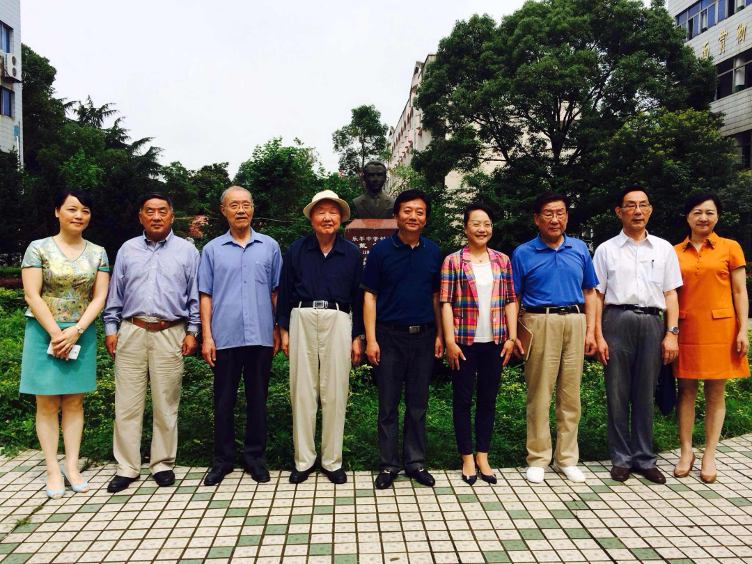 ▲汪大纲兄弟五人与乐平市领导罗璇、朱菁华、方静和乐中校长胡树林合影