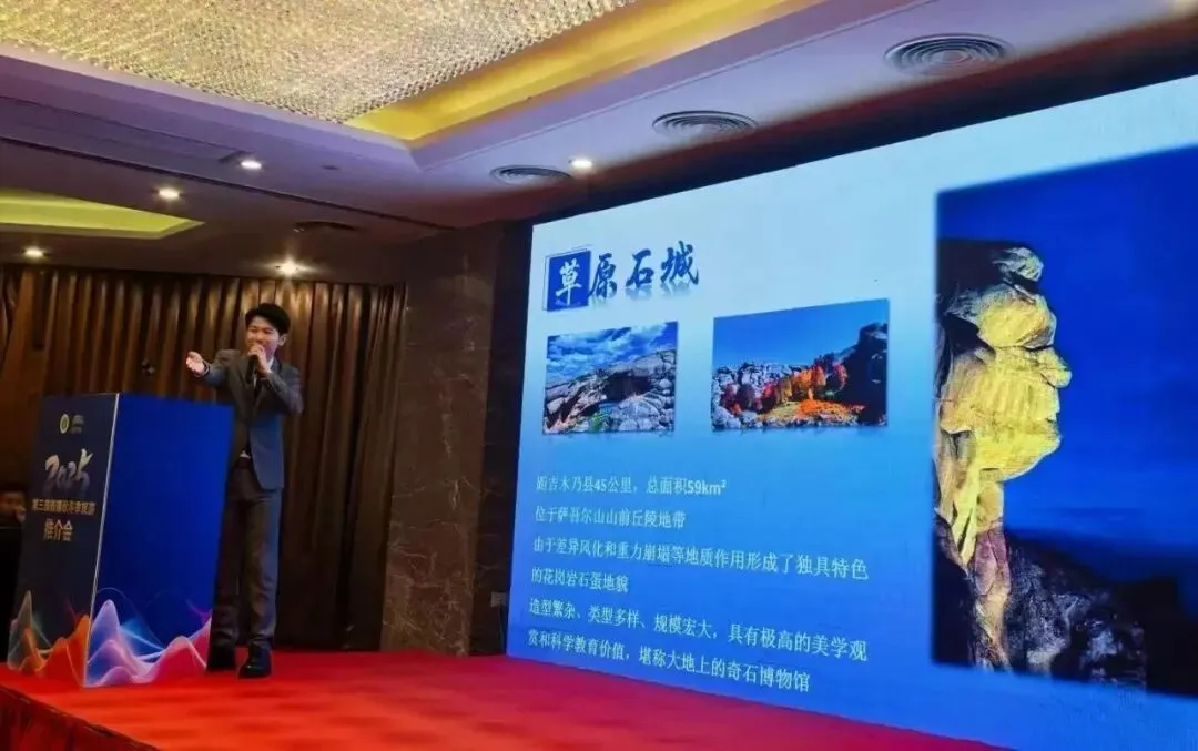 与喀纳斯的柔美仙境交相辉映,吉木乃草原石城则展现着新疆冬季苍茫而神秘的另一面。这片被誉为“大地上的奇石博物馆”的秘境,在冰雪的覆盖下,那些形似骆驼、苍鹰、神龟的奇岩怪石更显雄浑与魔幻。然而,石城的魅力远不止于外表。这里更是一本厚重的史书,作为中国最早发现有小麦和黍的地方之一,吉木乃草原石城是新疆最早有人类活动的见证,承载着数千年的人类农业文明与生存智慧。深厚的历史底蕴与独特的自然景观交融,形成了这里口岸跨境游魅力、红色戍边游情怀。此次推介会,它将揭开神秘面纱,向上海市民展示其壮丽的自然和人文魅力。