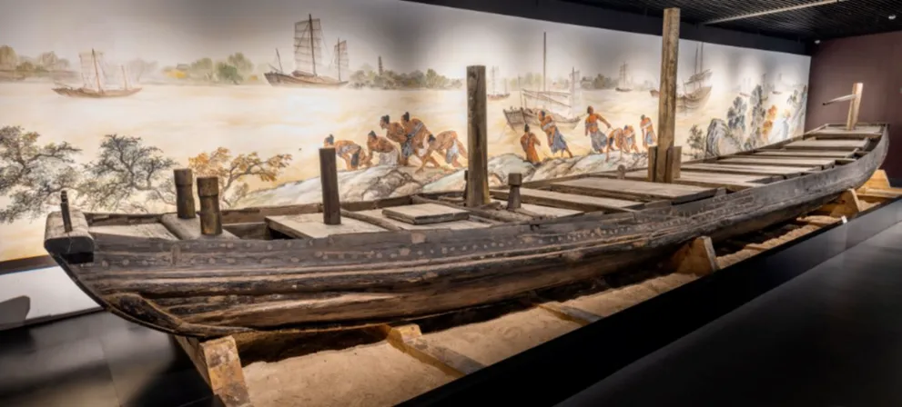 馆内的运河一号古沉船、“大业元年”刻铭砖等珍贵文物,见证了运河的繁盛与辉煌;复原的新潭码头、通济渠考古遗址层,让千年运河的风貌鲜活再现。
