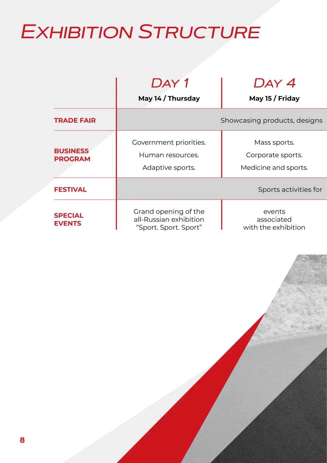 · 四大板块融合:展览 + 商务 + 体育 + 教育,覆盖全产业链;