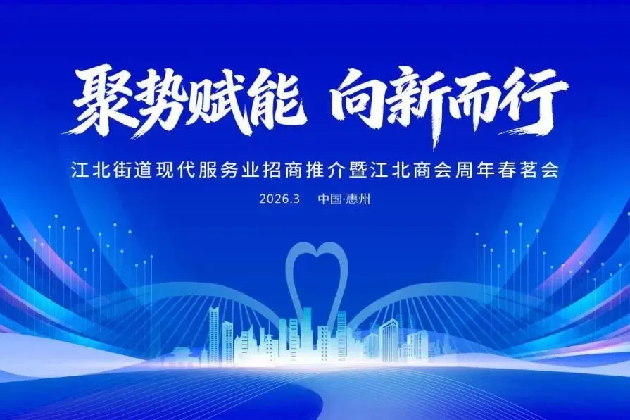 3月25日,惠州市江北街道现代服务业招商推介会暨江北商会周年春茗会在富力万丽酒店隆重举行。本次活动由江北街道办事处与江北商会联合主办,旨在搭建政企沟通与企业联动的优质平台,推介江北现代服务业发展机遇,助力辖区经济实现高质量发展。活动现场气氛热烈,各兄弟商会及辖区企业代表齐聚一堂,共商合作共赢发展大计。