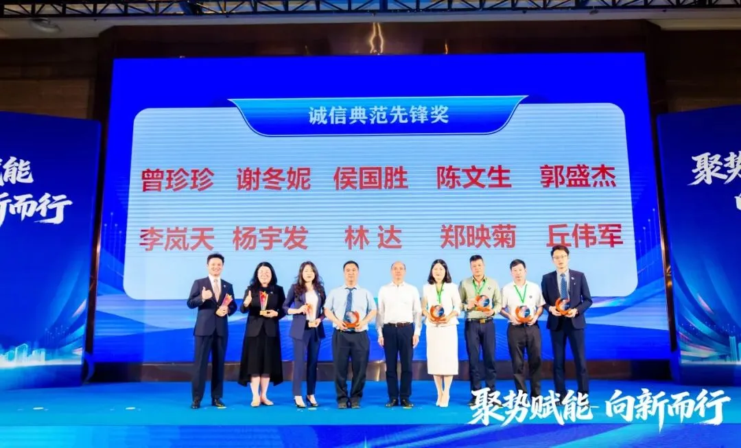 ▲我会副会长郑映菊(右四)荣获“诚信典范先锋称号”