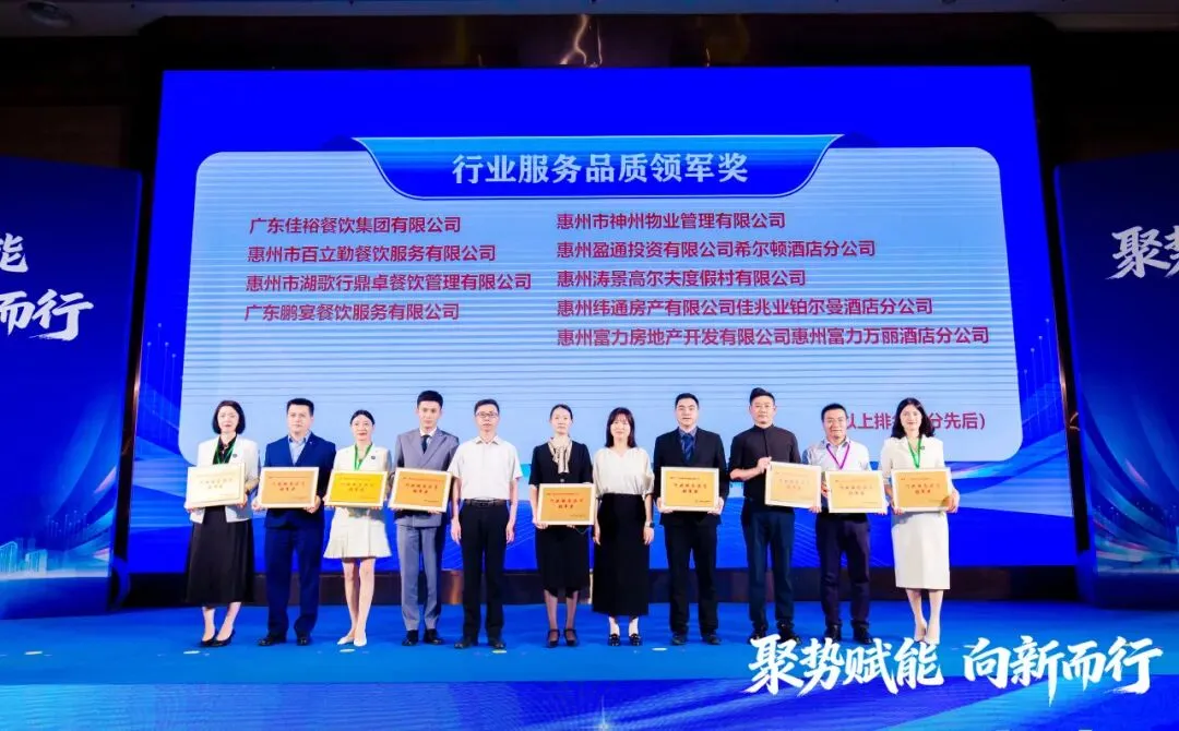 ▲我会副会长郑映菊(右一)公司广东裕餐饮集团有限公司荣获“行业服务品质领军奖”
