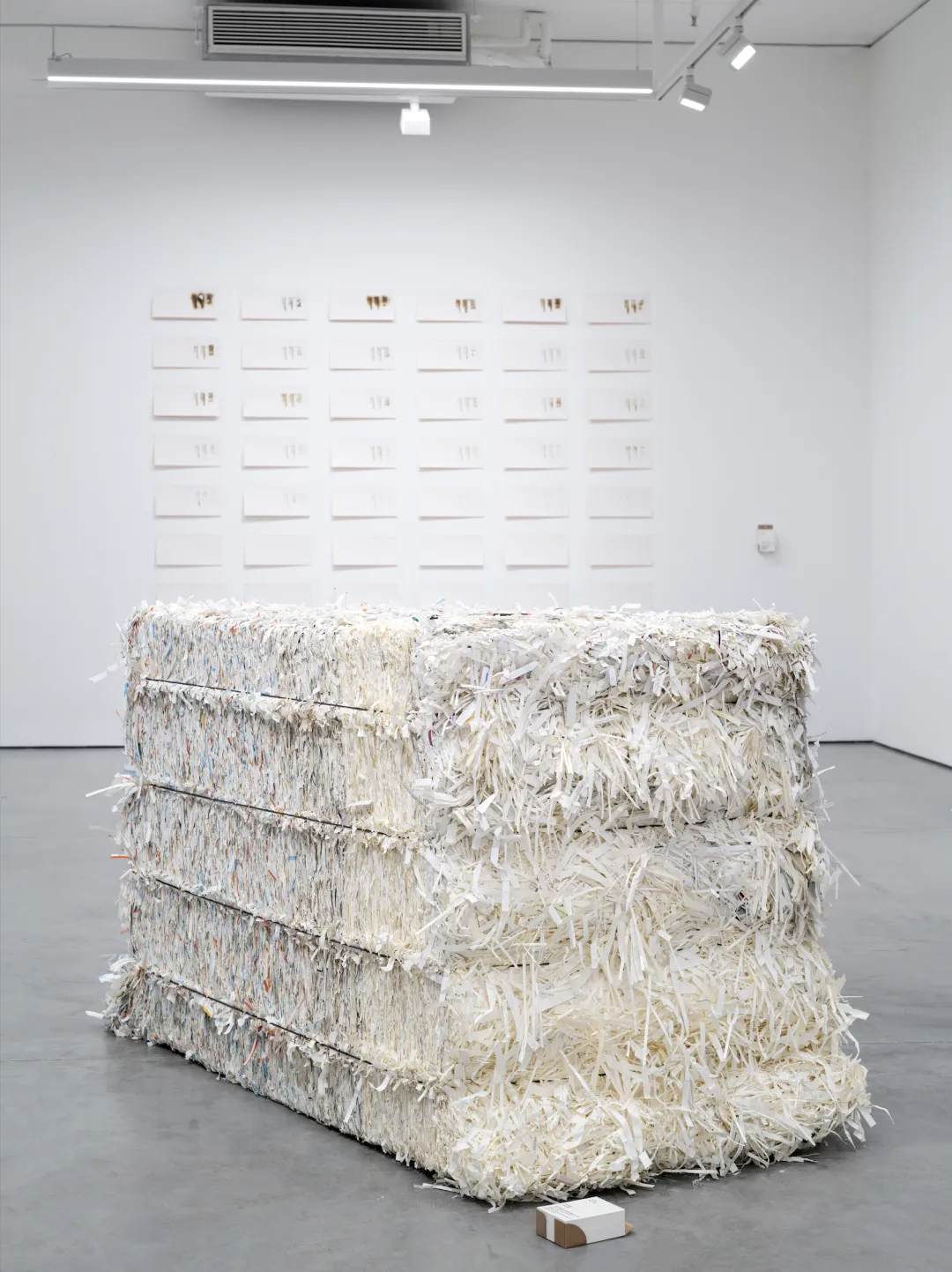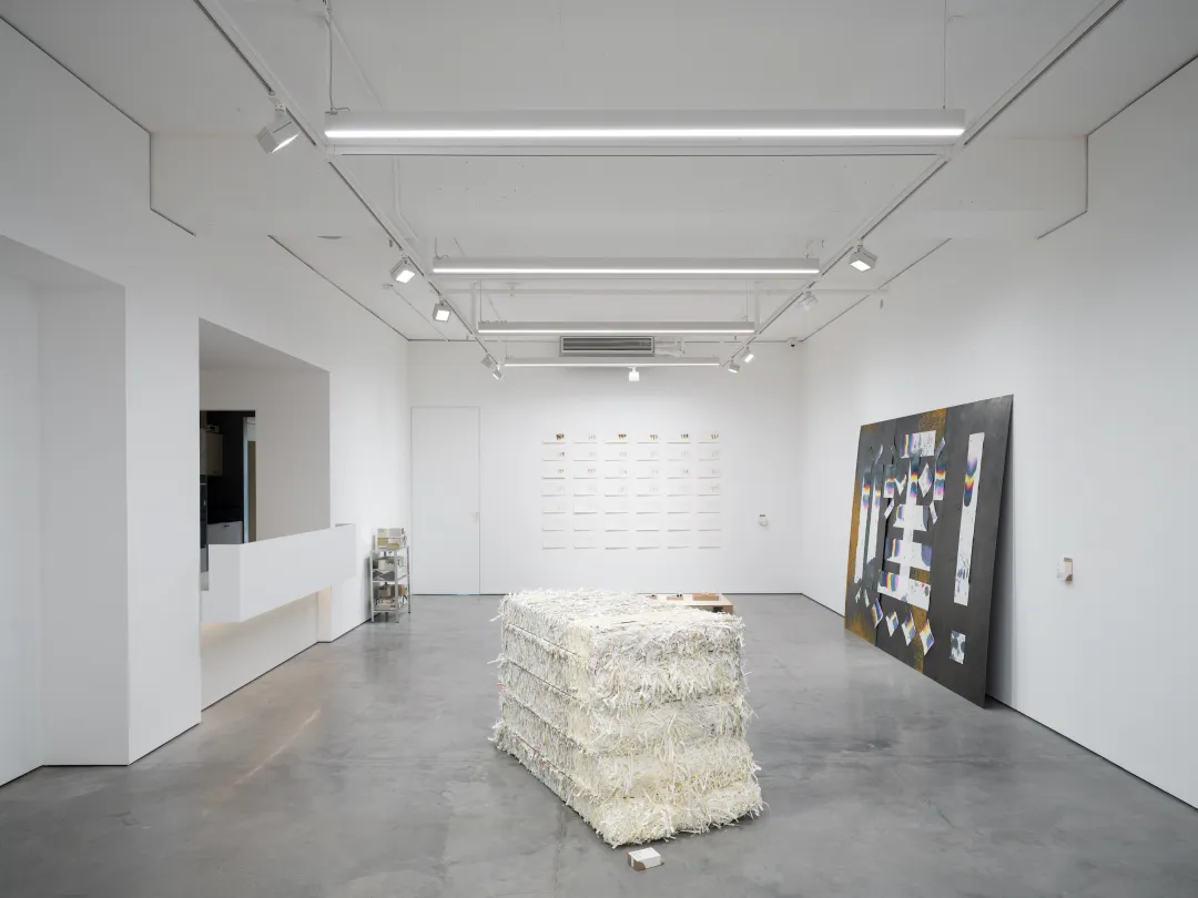 Modern printing plants are already equipped with extensive mechanised environmental systems. Above the workshop floor at SD(T)P, half-metre-diameter pipes are a common sight. These pipes suck the trimmings cut at various stages by air pressure to a small shed outside the workshop, where mechanical devices compress the paper scraps into blocks, awaiting unified recycling.The cubes formed by these paper scraps possess surface textures that are randomly generated yet highly distinctive. Each unit weighs around 400 kilograms – heavy and silent, endowed with an epic and tragic quality comparable to the stone columns of the Parthenon.When I saw these stacked paper blocks, I abandoned all my previous ideas. I only wanted to bring them to the exhibition space.