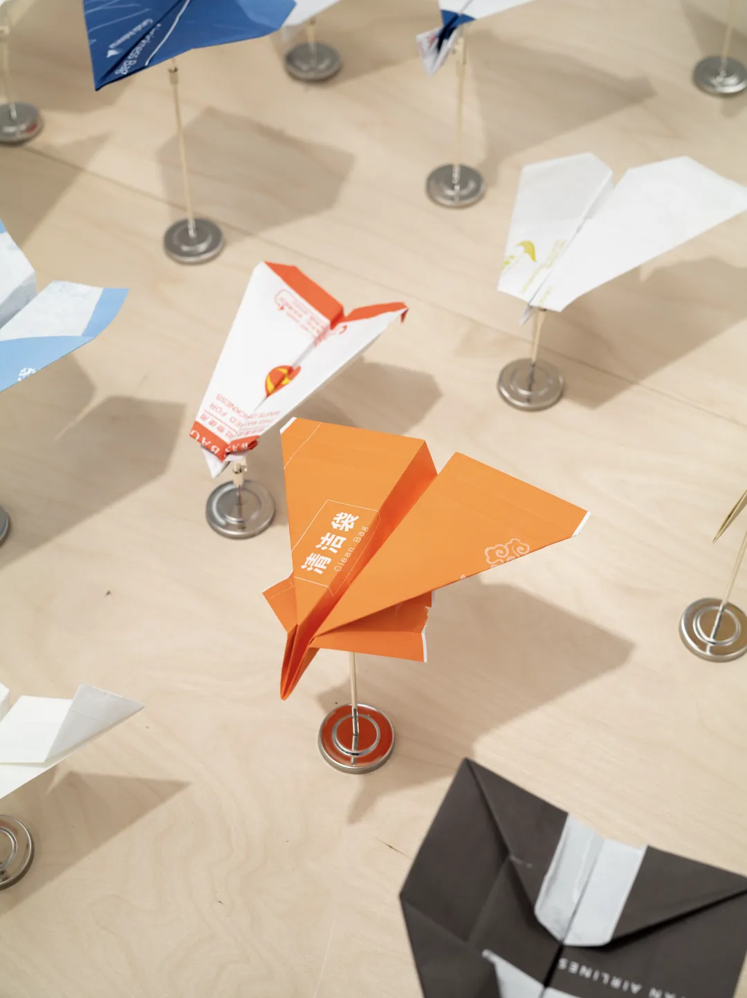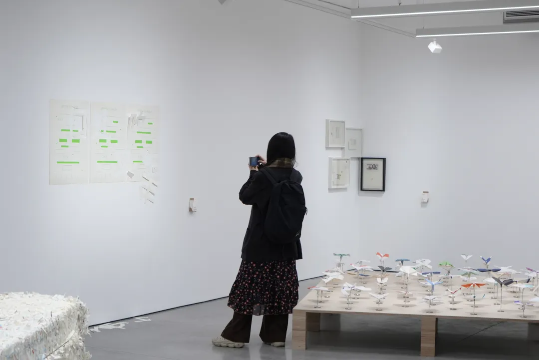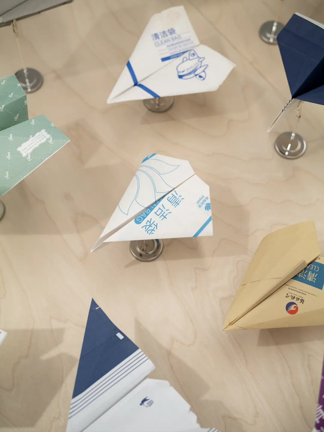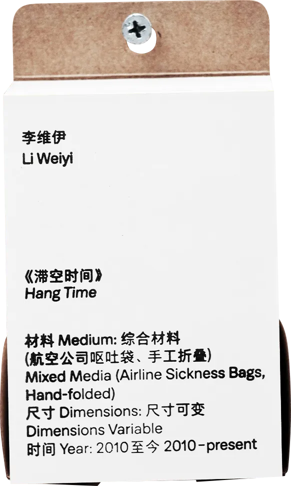 In such circumstances, folding becomes a logical act. People often unconsciously fold, tear, or doodle on whatever paper is at hand to combat boredom and waiting. Those airsickness bags, printed with different airline logos and originally prepared for potential discomfort at high altitudes, are here folded into ‘mini aircraft’ representing their respective airlines. As these paper airplanes accumulate and are presented collectively, they not only form a microcosm of the global aviation system but also clearly highlight a type of residual time that is systematically overlooked.
