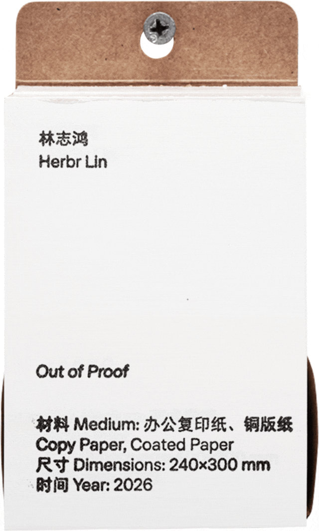 Out of Proof:以日常打样后裁切产生的纸张余料为材料,在纸张自身张力的基础上,通过简单造型,使其呈现出新的观感。平面镂空的部分,构成了一种不稳定的空间形态。