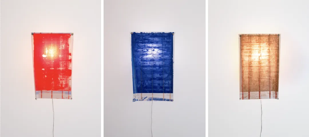 RISO 版纸(Master Paper)是一个短暂而关键的媒介,脆弱而坚韧。印刷完成后被废弃的版纸,在垃圾盒内堆叠、挤压、摩擦,油墨交融间形成未经设计的偶然类扎染肌理。我们想保留这份原生痕迹,让它在光线中显形,“忽视”成为主角。