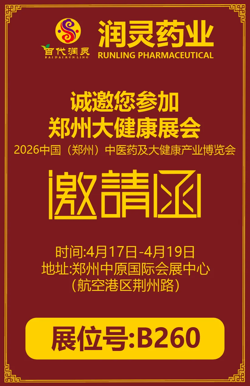 「邀请函」润灵药业诚邀您参加郑州大健康展会2026中国(郑州)中医药及大健康产业博览会-4月17日-19日