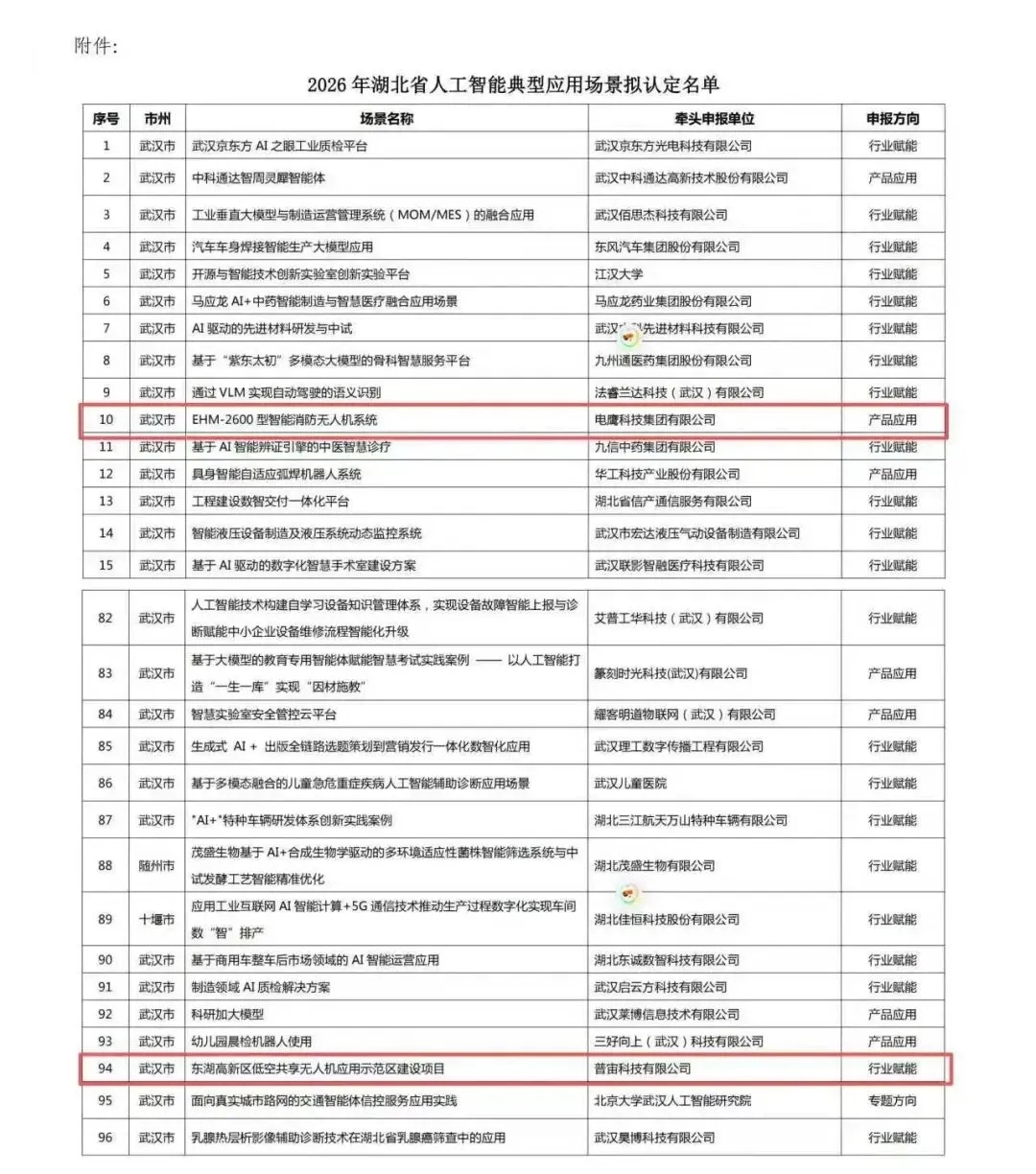 用“空天地一体化”打造全国首个智慧城市,该项目由普宙科技联合东湖高新区共同打造,部署无人机自动机库128台、无人机186架,打造55种AI算法和30余个低空应用场景,面向公安、交管、城管、应急等34个业务部门,形成“常态+应急+专项”运行机制,已在城市治理、公共安全、生态环保、消防应急等多个领域取得了较好的应用成效。
