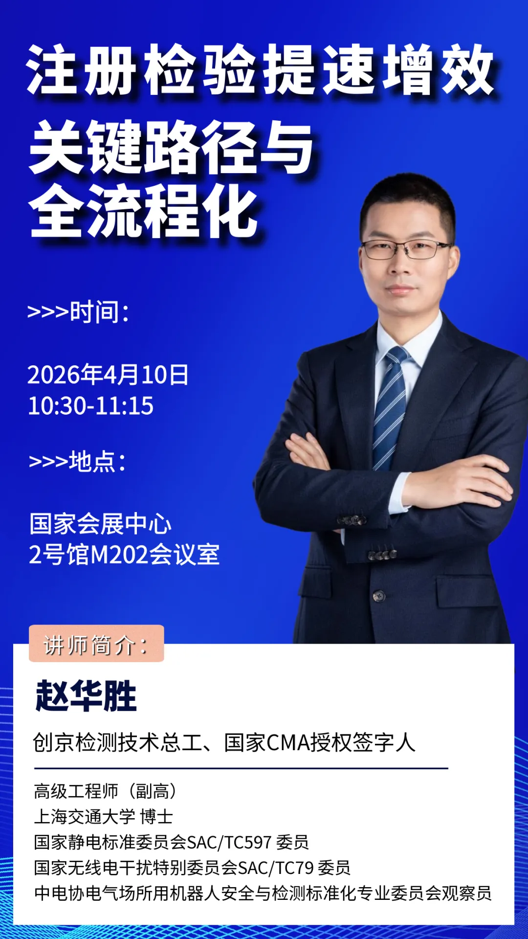 值此盛会,上海创京检测诚挚邀请您莅临我司展位4.1号馆4.1Y49,共同见证和探讨行业发展新机。我们将为您安排专人解读最新法规动态、分享检测认证实战经验,助力您的产品高效合规上市。欢迎您莅临展位现场交流。