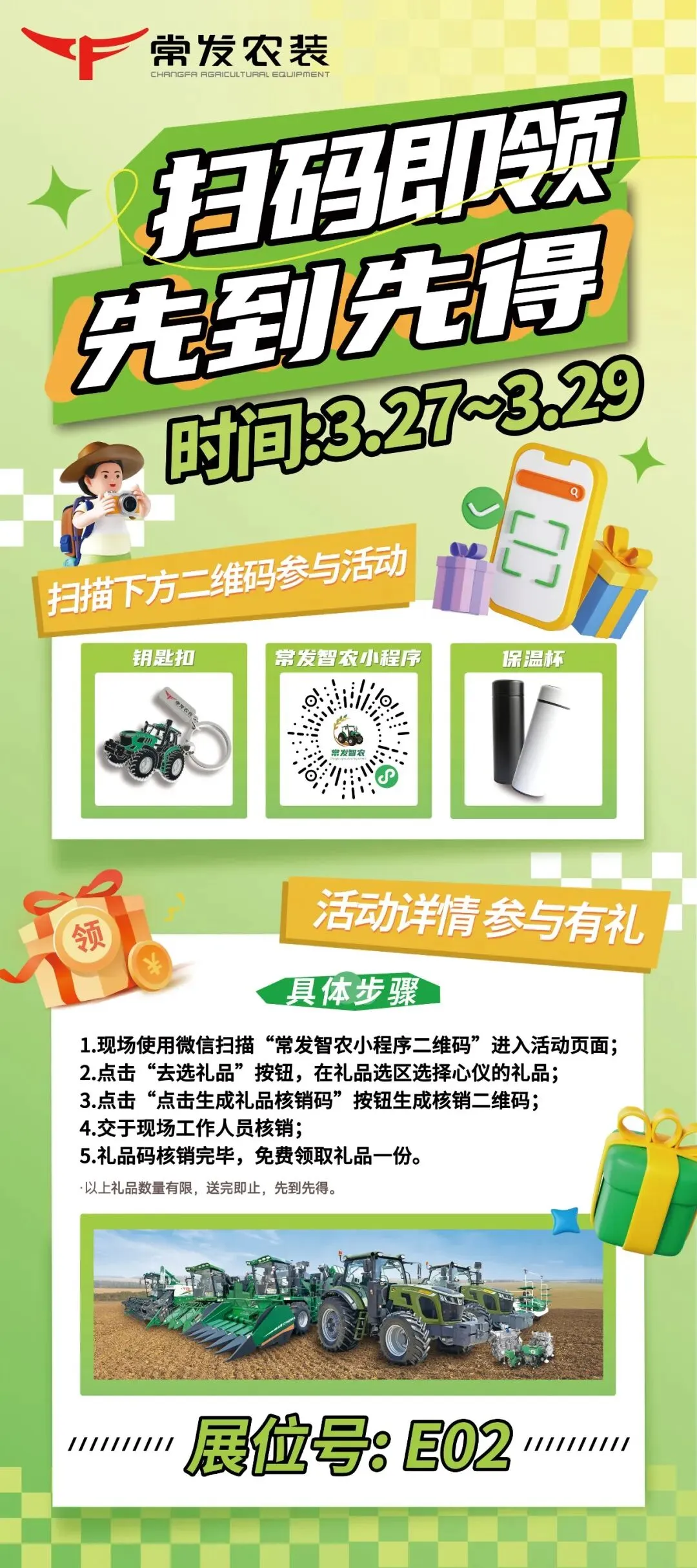 2026年3月27日—29日,驻马店国际会展中心即将迎来农机行业盛会!常发农装携全系农机装备亮相E馆E02展位,以硬核产品与诚意好礼,诚邀全国用户共赴这场春日之约!