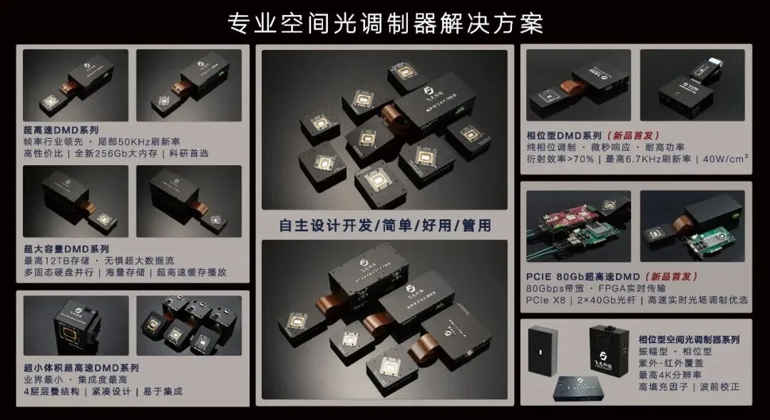 除了两款重磅新品,飞光科技还展出了覆盖科研与工业全场景的空间光调制器全系产品矩阵: