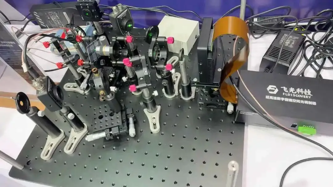 现场演示中,观众可以直观感受到这一技术突破带来的震撼:0级衍射效率>70%,响应速度达微秒级,相位调制速率最高可达6.7KHz,承受功率>40W/cm²。这一技术解决了传统液晶空间光调制器响应速度慢、功率耐受性低的问题,同时打破了传统DMD仅能二值化振幅调制的局限,为计算成像、全息显示、激光加工及生物医学领域提供了前所未有的硬件支持。