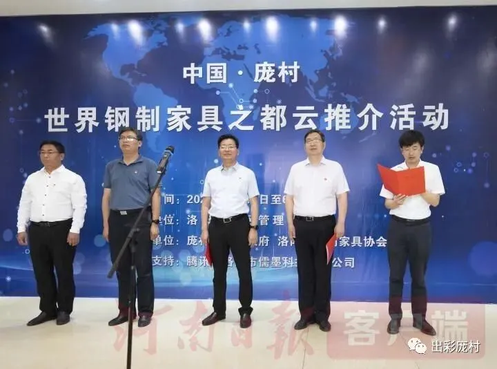 洛阳市副市长、河南自贸试验区洛阳片区管委会主任胡加彬出席(庞村)钢制家具云推介系列活动启动仪式并致辞。他说,这次开展的云推介系列活动,就是要让钢制家具产业30多年来的发展基础、产业优势,与腾讯、抖音等媒体的互联网优势相融合,迸发出强大的火花,催生强劲的动力,把钢制家具产业、企业、产品推向更高的平台,产生更大、更深远的影响,为加快洛阳副中心城市建设、打造全省高质量发展新的增长极作出新的贡献。