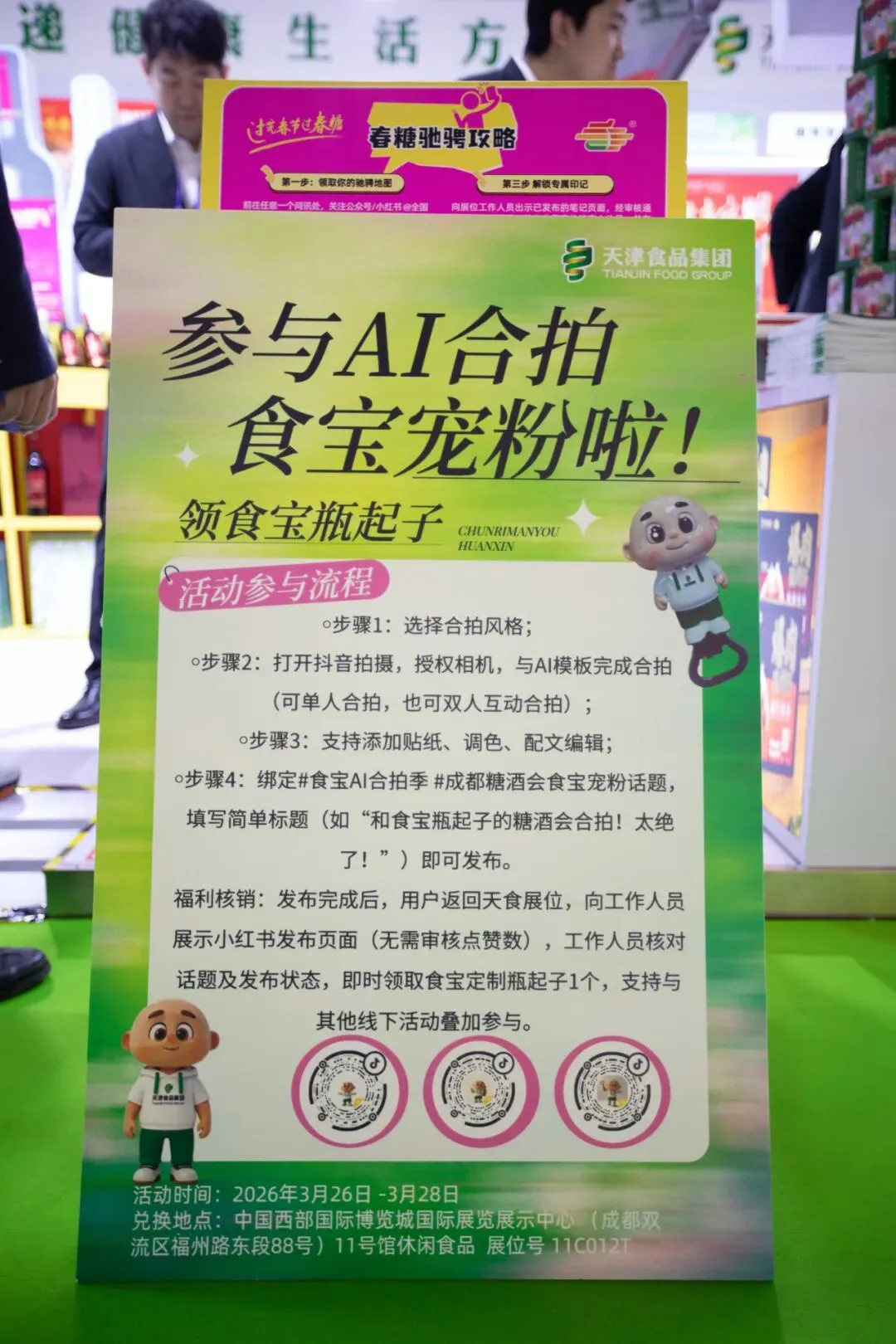 集团IP“食宝”推出专属互动,客商关注“食力天津”小红书账号,即可领取定制瓶起子,现场AI合拍活动也吸引众多观众参与,线上线下联动提升品牌曝光度。