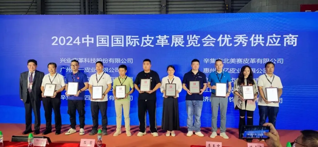 兴业皮革科技股份有限公司、广州正一皮业有限公司、乐山巨星农牧股份有限公司、浙江南龙皮业有限公司、辛集市宏四海皮革有限公司、辛集市北美赛皮革有限公司、惠州宏亿皮业有限公司、辛集市东贞皮业有限公司、江西雄屹皮业有限公司、济南鲁日钧达皮革有限公司10家企业荣获“皮革类优秀供应商”。