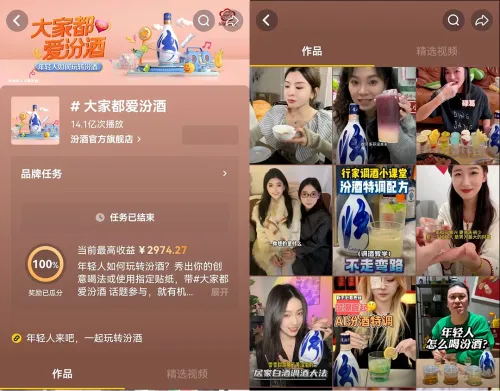 比如山西汾酒官方抖音账号发布桂花汾酒自调酒视频,意外引爆全网,催生出“茉莉汾酒、话梅桃汾”等创意喝法,汾酒因此被年轻人誉为“泡酒界的隐藏冠军”,无论是线上的抖音挑战赛,还是线下的快闪活动、跨界联名故宫、敦煌推出国潮文创酒,汾酒在年轻群体当中的品牌声量是非常好的。