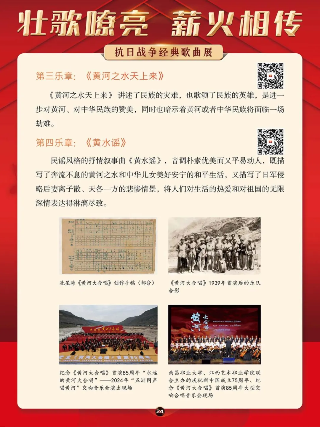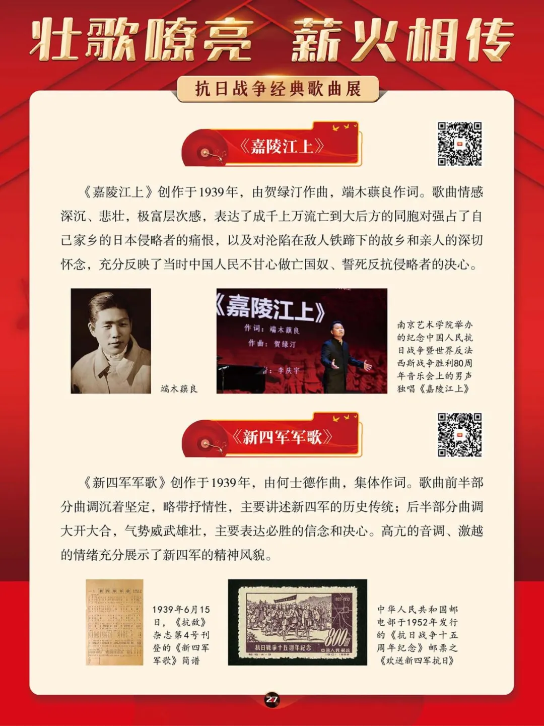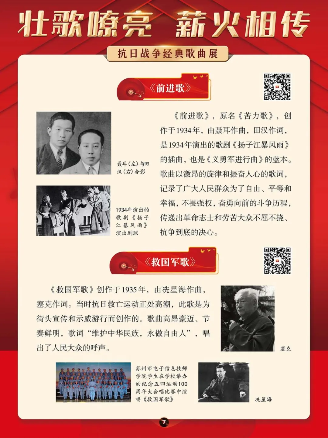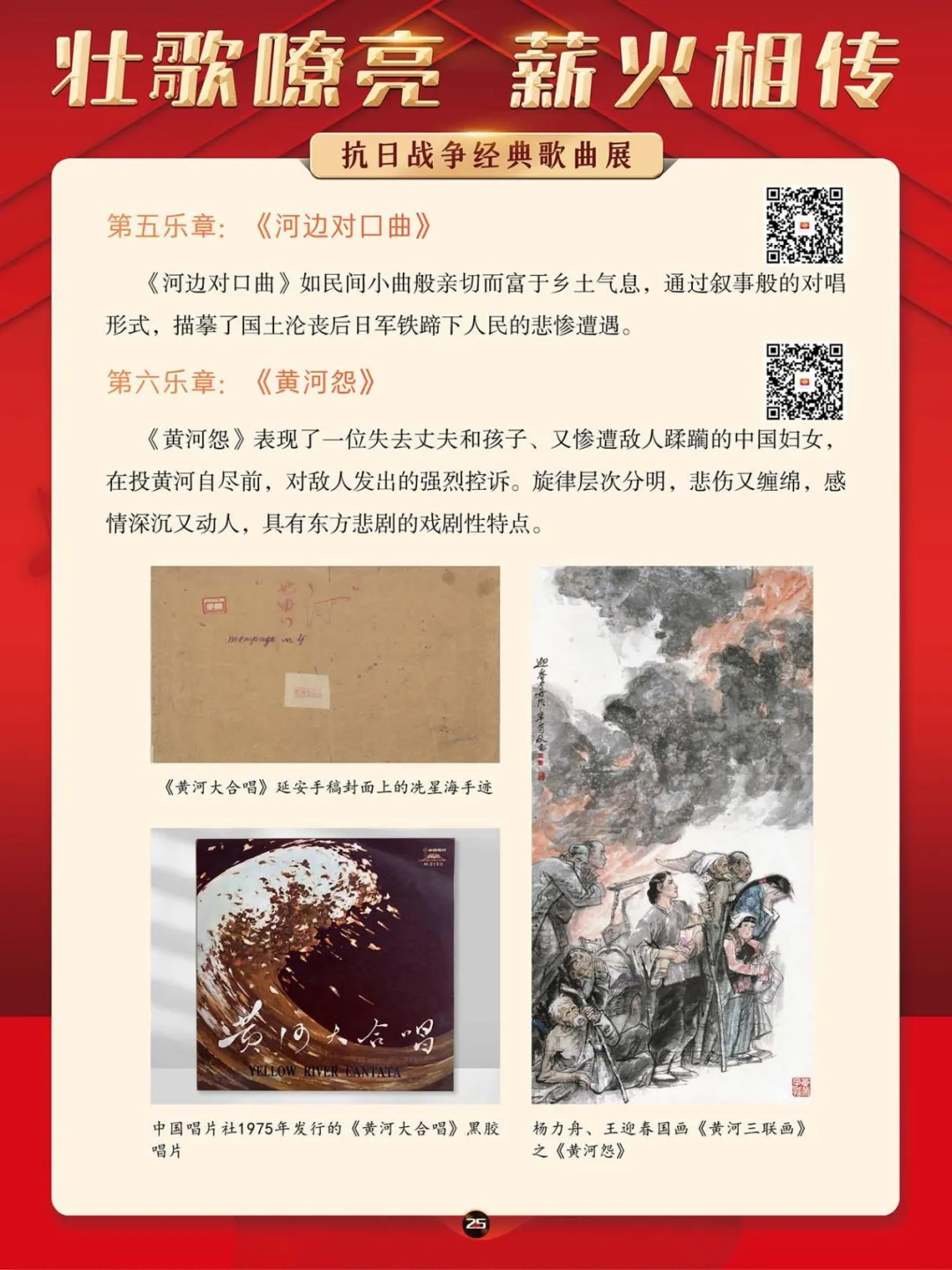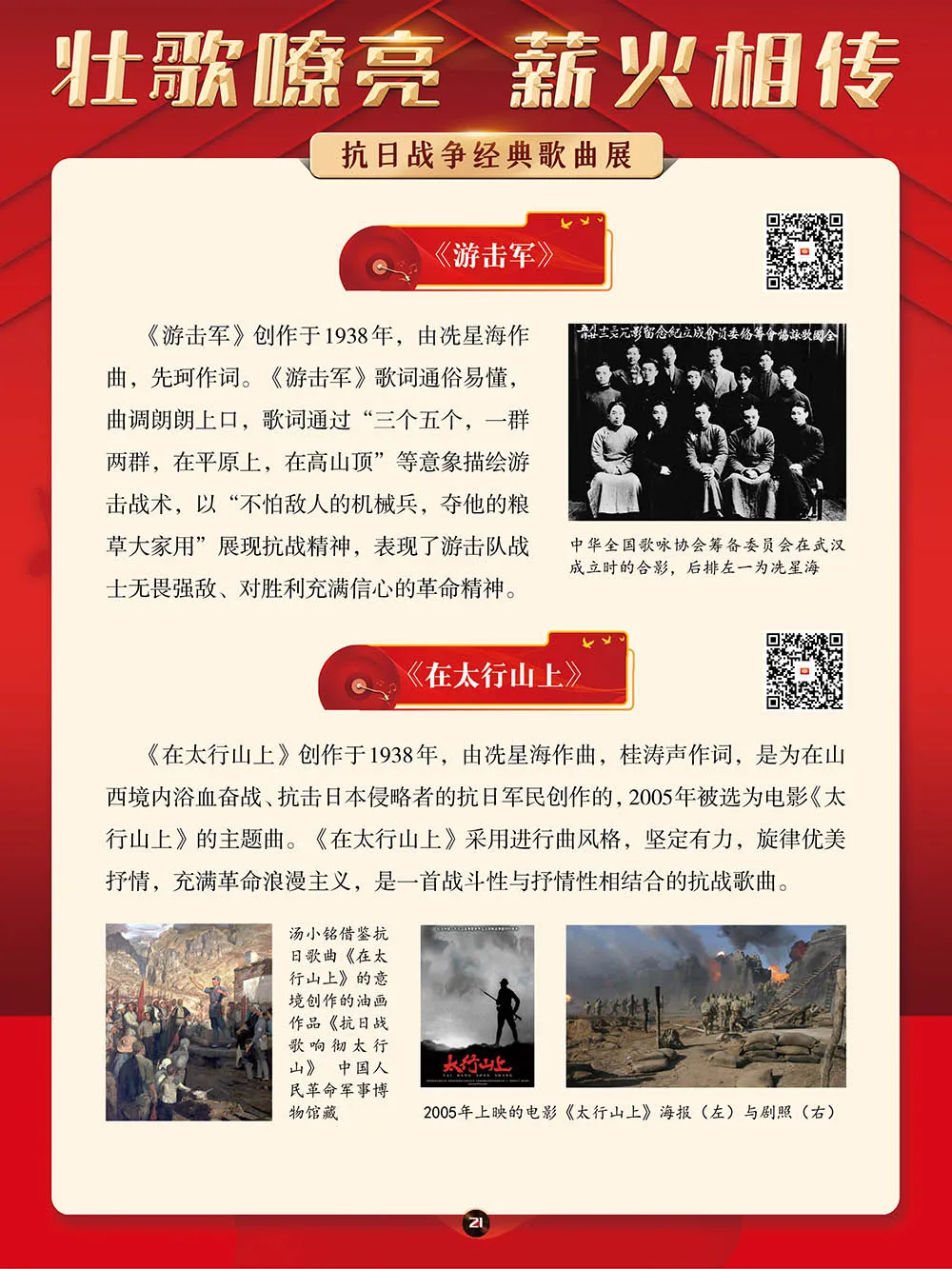 在那段艰苦卓绝的岁月里,一首首激昂澎湃的抗日战争歌曲,如同星星之火,点燃了亿万民众心中的希望与激情,它们是那个时代最直接、最有力、最深入人心的号角。本展将带大家一同回顾那些产生于抗日战争期间的歌曲,其中既有激情澎湃、催人奋进、积极昂扬的进行曲,也有“字字血、声声泪”地控诉敌人暴行的悲歌。这些歌曲伴随着抗日救亡运动的蓬勃兴起而诞生,并迅速传遍大江南北,成为凝聚民族精神、激发全民抗争的独特文化武器。它们以其朴实真挚的语言、慷慨激昂的曲调,深刻地反映了民族危亡的紧迫感和人民大众誓死抵抗的决心。