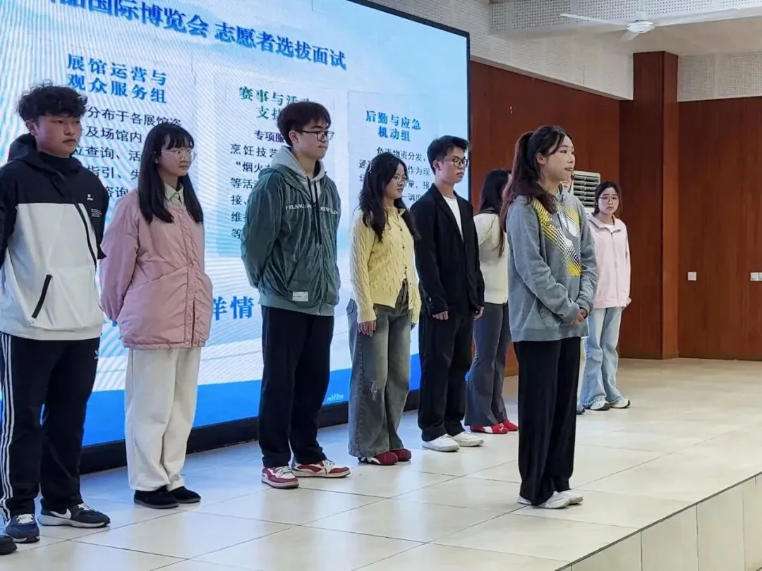 本次面试主要针对语言表达、形象气质、综合经历、应急处理能力等内容进行考察。同学们自我介绍流畅、经历丰富,在过程中展现出良好的沟通与协作能力。据悉,本次志愿服务共设置综合协调与接待、会务与论坛服务、展馆运营与观众服务、赛事与活动支持、后勤与应急机动五种岗位。