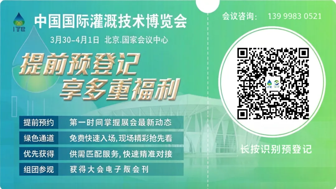 2026中国国际灌溉技术博览会暨世界灌溉科技大会将于3月30日-4月1日在北京国家会议中心盛大开幕。同期举办2026现代设施农业大会、第12届北京国际智慧农业博览会、北京国际水利科技博览会,四展联动,汇聚300+国内外知名企业,覆盖60余个国家和地区。
