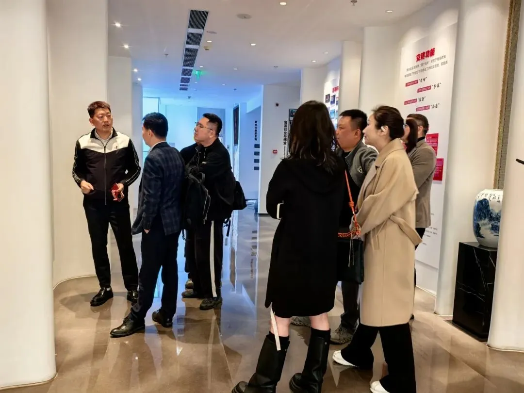 座谈前,招商组一行在我会新生代联合会秘书长、副会长李春森的介绍下参观了商会会馆,了解商会在组织建设、赋能服务、合作共建以及公益慈善等方面的工作。