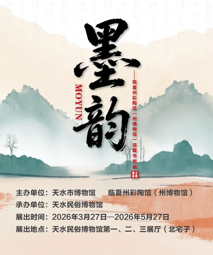 临夏州彩陶馆(州博物馆)与天水市博物馆联袂推出《墨韵——临夏州彩陶馆(州博物馆)馆藏书画展》,将于2026年3月27日在天水民俗博物馆开展。