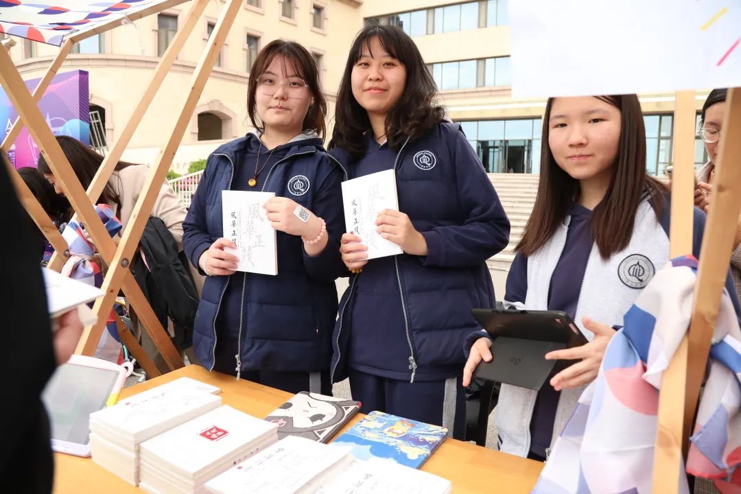 学习产品种类丰富,创意十足,有同学们将自己的阅读心得凝聚成的书册;也有别具一格的手工毛线饰品;有国际部同学制作的第三册短篇小说文集;也有十年级的同学将《红楼梦》整本书阅读的学习成果集结成册;还有即将到来的“青浪”音乐节、大腕戏剧社原创话剧《一座剧院》和戏剧之夜的门票也在本届青博会中大卖。