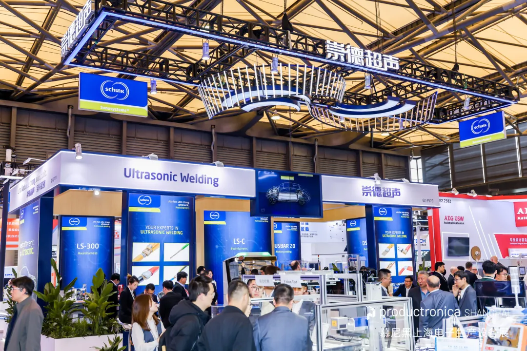 崇德超声波重点展示了多款超声波焊接单机及全自动集成设备,其中Minic-III是一款维护少且无需压缩空气冷却系统的超声波焊接机,焊接范围在0.26mm²到30mm²之间,支持铜线、铝线以及铜铝混合焊接,可通过集成的ID芯片实现即插即用和顺序焊接。DS20-II设备首次使导线焊接到端子上成为可能,其焊接范围在6mm²到120mm²之间,支持铜、铝线及端子之间的连接,并配备绝缘压接装置或切断装置,组装罩支持360度接近以便于维护,同时集成Schunk最新开发的AI无损在线检测系统(AQC),全面满足客户生产过程控制的全面需求,实现降本增效目标。现场还展出了LS-C及Busbar20设备,其适用于连接铜或铝电缆与触点零件、管状电缆接线头或母线,配有不良品切除装置和过程数据采集功能,可联网并集成到自动生产流水线中。同时,此次展会崇德首次展出了超声波塑料焊接伺服机, 配有独立开发的控制软件,大幅提升焊接效率,降低能耗,使得焊接更精准,更稳定。