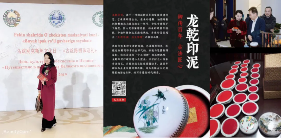 以“非遗文创 + 国际会展”为特色,打造中国文化出海专业平台。以非遗百年技艺「龙乾印泥」为代表,提供非遗设计、文创设计、创作定制、文化交流、国际推广全链条服务,已落地多项高规格国际文化交流项目。