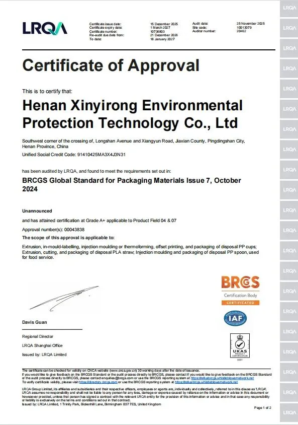 ✅ BRCGS A+ 全球包装材料标准认证