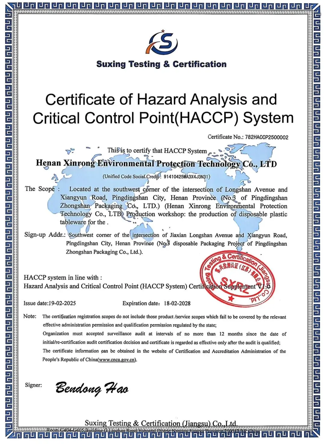 ✅ HACCP 危害分析与关键控制点体系认证