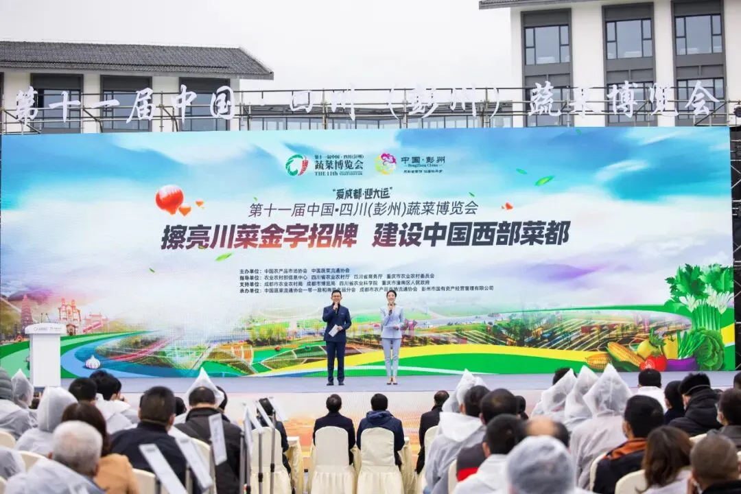 11月22日上午,由中国农产品市场协会、中国蔬菜流通协会主办,农业农村部信息中心、四川省农业农村厅、四川省商务厅、重庆市农业农村委员会全程指导的第十一届中国·四川(彭州)蔬菜博览会(以下简称“菜博会”)在四川成都·彭州濛阳天府蔬香博览园盛大开幕。十三届全国政协经济委员会副主任、商务部原副部长房爱卿,四川省政协副主席陈放,成都市委常委左正,中国蔬菜流通协会会长戴中久、副会长陈明均以及四川省、成都市、彭州市政府相关领导和行业专家与蔬菜批发市场、电商、经销商代表等千余人出席了开幕式。