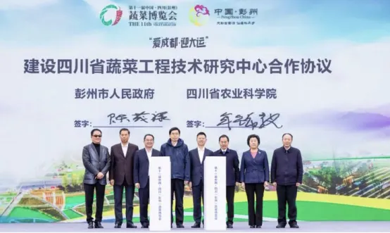 ▲ 四川省农科院与彭州市成立“四川蔬菜工程技术研究中心”签约仪式