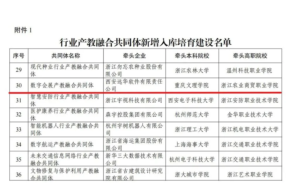 近日,浙江省教育厅正式公布2025年度产教紧密融合新型平台立项结果,由我校与浙江农业商贸职业学院、西安远华软件有限责任公司共同牵头组建的“数字会展产教融合共同体”成功入选省级行业产教融合共同体培育建设名单。这是学校会展经济与管理专业在深化产教融合、服务国家战略和区域产业发展上取得的又一成果,标志着学校办学内涵建设与协同育人水平迈上新台阶。