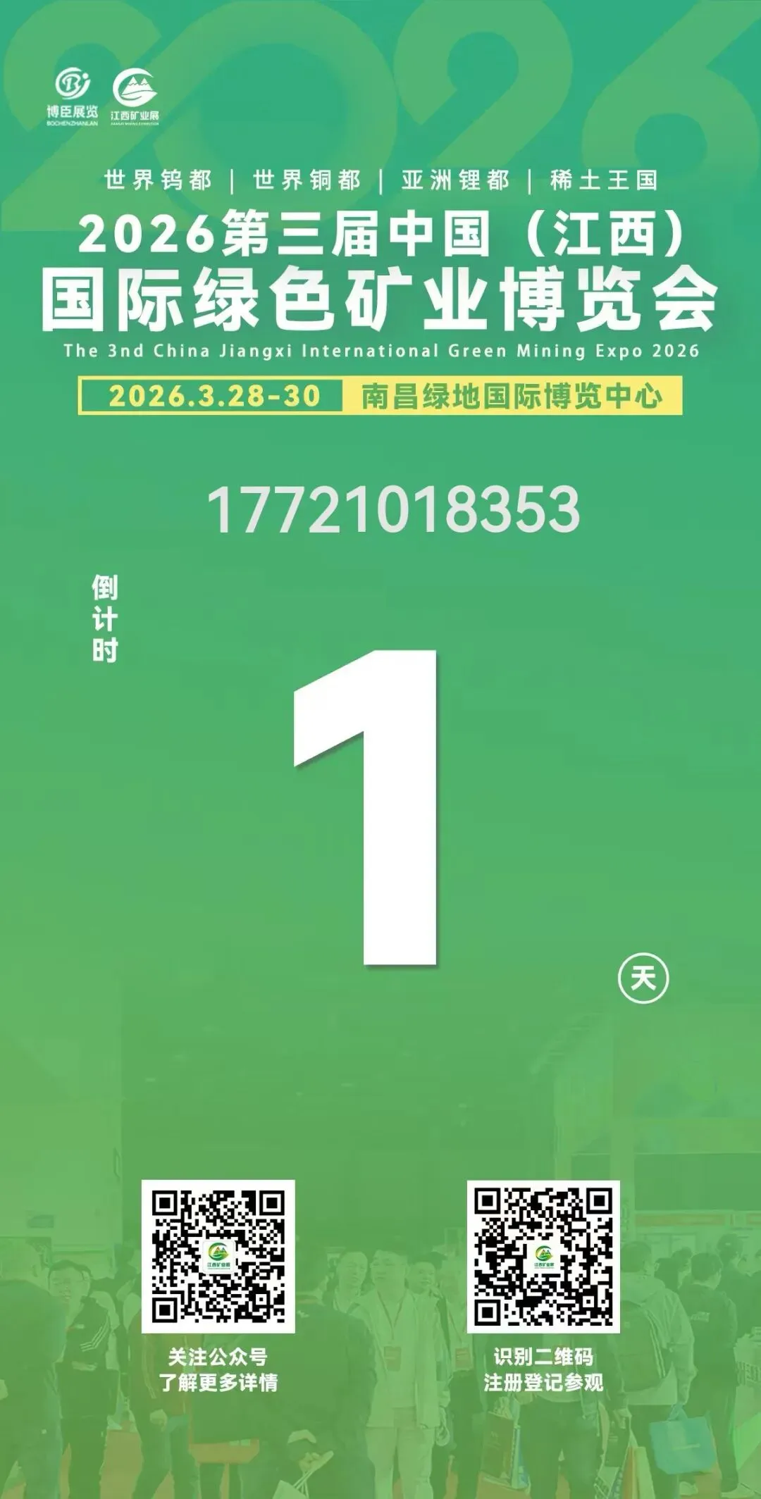 盛会将启,共赴华章。2026第三届中国(江西)国际绿色矿业博览会以开放之姿、专业之态,诚挚邀请海内外矿业同仁、科研机构、投资机构、采购商莅临参观、洽谈合作、共襄盛举。相约南昌,共探绿色矿业新未来,携手开创矿业高质量发展新篇章。