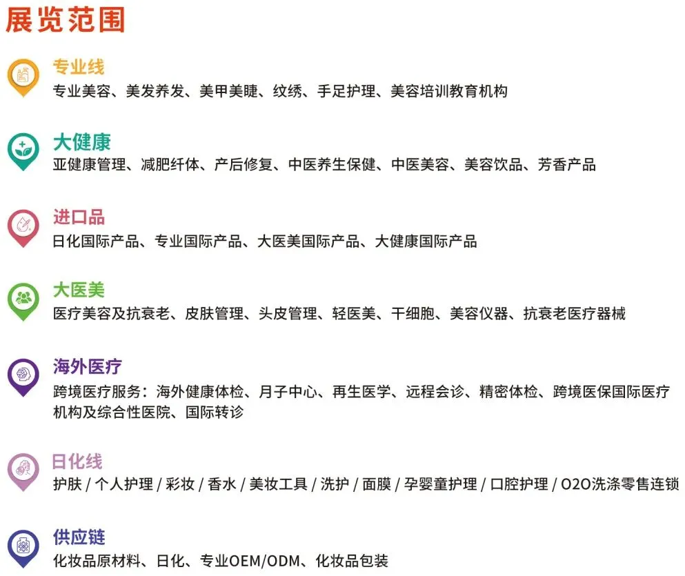 覆盖品类:专业线、日化线、医美抗衰、大健康、进口品、供应链、美业服务