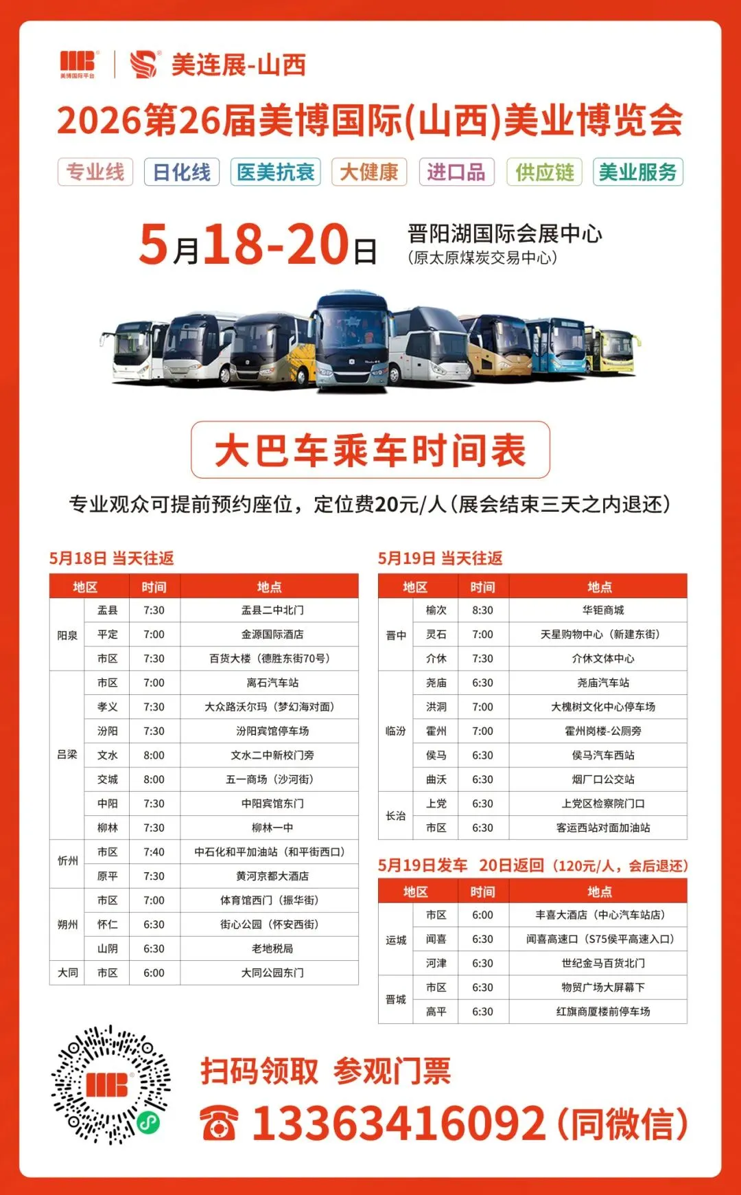 ? 立即扫码,领取免费参观门票,预约太原免费大巴座位