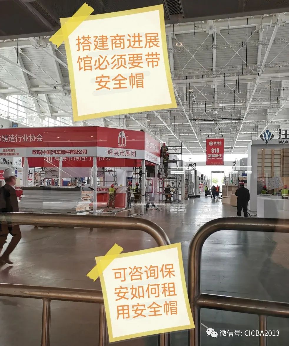 展商搭建入馆必须佩戴安全帽,可咨询展馆保安如何租赁安全帽