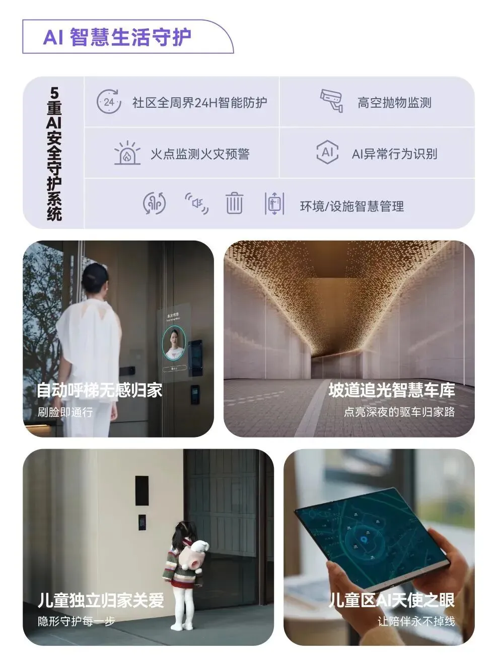 该项目通过建设高标准智慧社区,打造“New Life OS智慧社区系统”,社区公共空间实现24小时AI安全守护、无感便捷通行;室内空间全面搭载华为鸿蒙智家系统,通过智能中控屏或手机APP,可一键控制灯光、空调等。