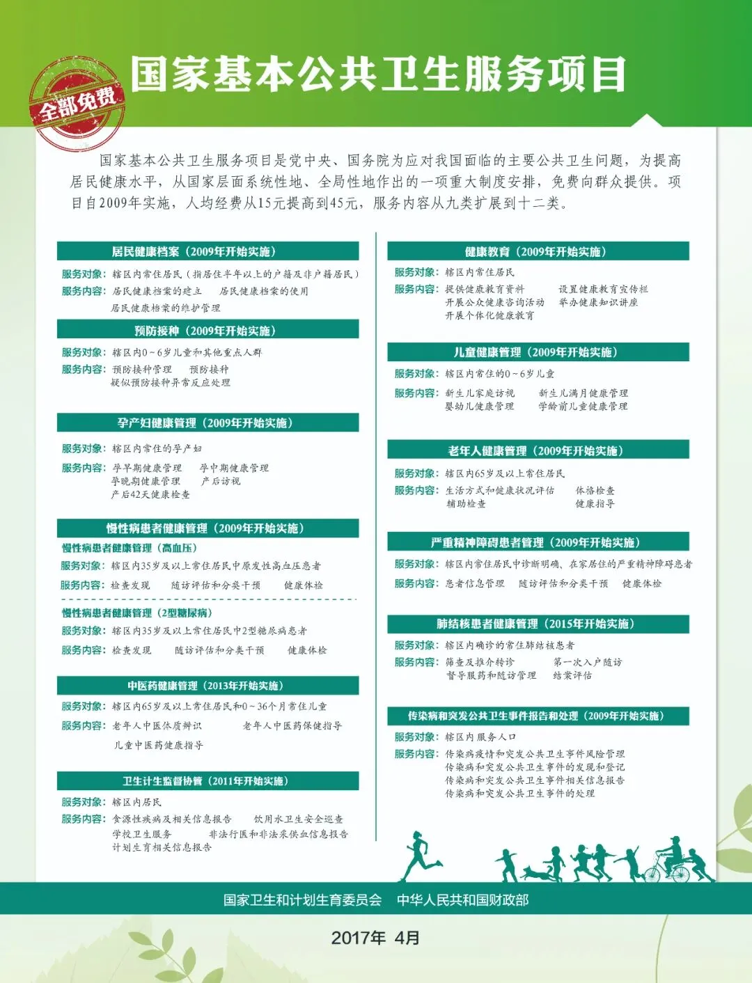 开展服务项目所需资金主要由政府承担,城乡居民可直接受益。