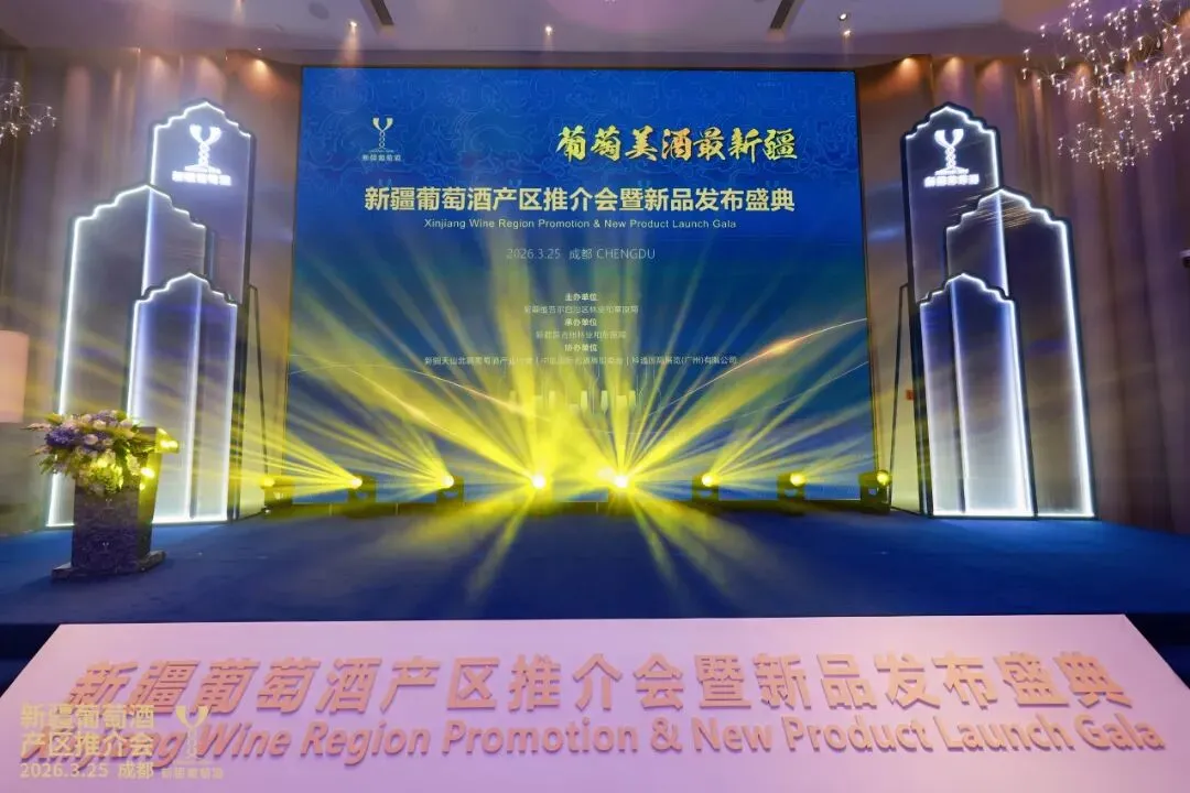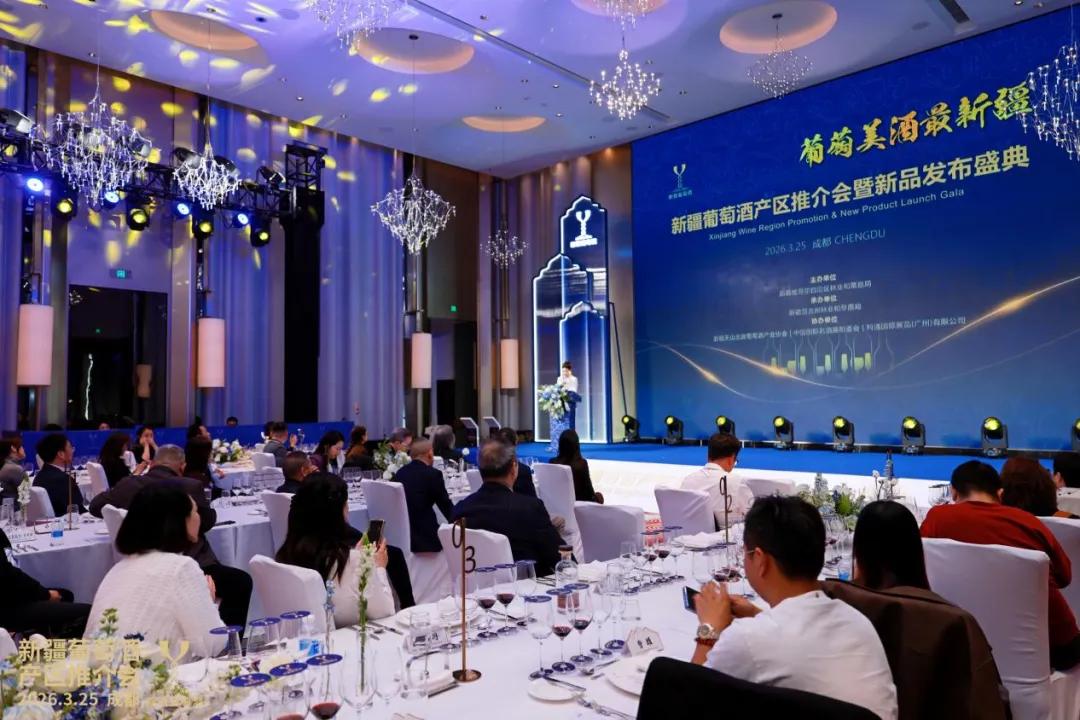 三月蓉城,酒香四溢。3月25日下午,2026新疆葡萄酒产区推介会暨新品发布盛典在成都成功举办。本次活动由新疆维吾尔自治区林业和草原局主办,新疆昌吉州林业和草原局承办,新疆天山北麓葡萄酒产业协会、中国国际名酒展组委会、科通国际展览协办,汇聚中国酒业协会、各省市酒类行业协会、国内外产区代表、知名酒庄、经销商及葡萄酒大师等各界嘉宾,以酒为媒搭建专业交流合作平台,成为本届糖酒会备受关注的行业盛会。