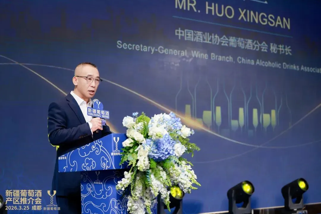 活动以“展示产区魅力、发布匠心新品、缔结深度合作”为核心,全方位展现新疆葡萄酒产业的发展实力与市场潜力。中国酒业协会葡萄酒分会秘书长火兴三致辞时,高度肯定新疆葡萄酒产业发展成果,称其为全国第二大葡萄酒生产规模产区,是中国葡萄酒产业高质量发展的生动缩影,已实现从资源优势向市场优势的转变。他提出风土表达、科技赋能、跨界融合的发展期望,并表示中酒协将全力支持新疆产区建设,助力其品牌走向全球。