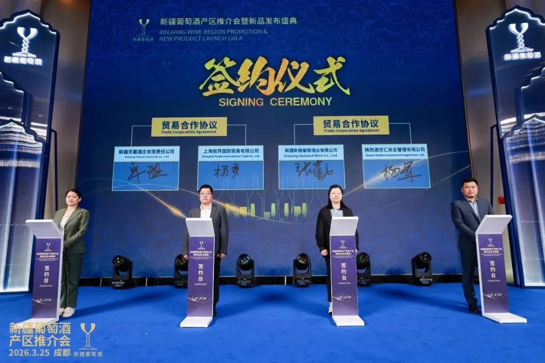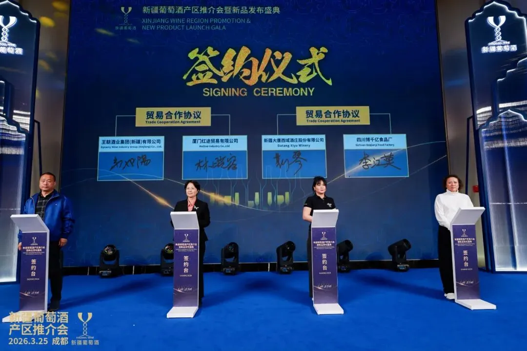 签约仪式成为本次活动的亮点,王朝酒业集团(新疆)有限公司、新疆天塞酒庄、新疆丝路酒庄等新疆优质酒庄,与上海、四川、陕西等地商贸企业完成多轮签约,合作覆盖渠道拓展、品牌推广、产品销售等领域,签约金额超千万元,彰显了市场对新疆葡萄酒的高度认可,也为其拓宽全国市场奠定坚实基础。