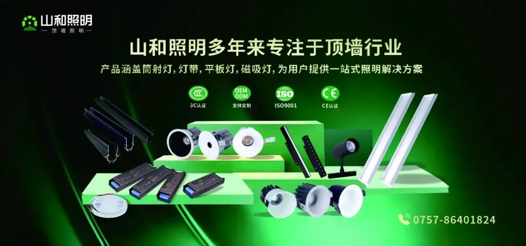 “让每一束光都有温度,让健康好光温暖千家万户!”如今的山和照明,正以持续创新的姿态,深耕顶墙照明、优化产品矩阵、升级服务体系,为顶墙行业注入更具温暖与专业的照明核心价值!