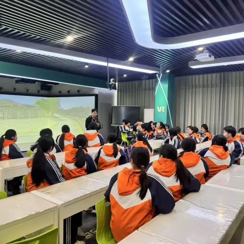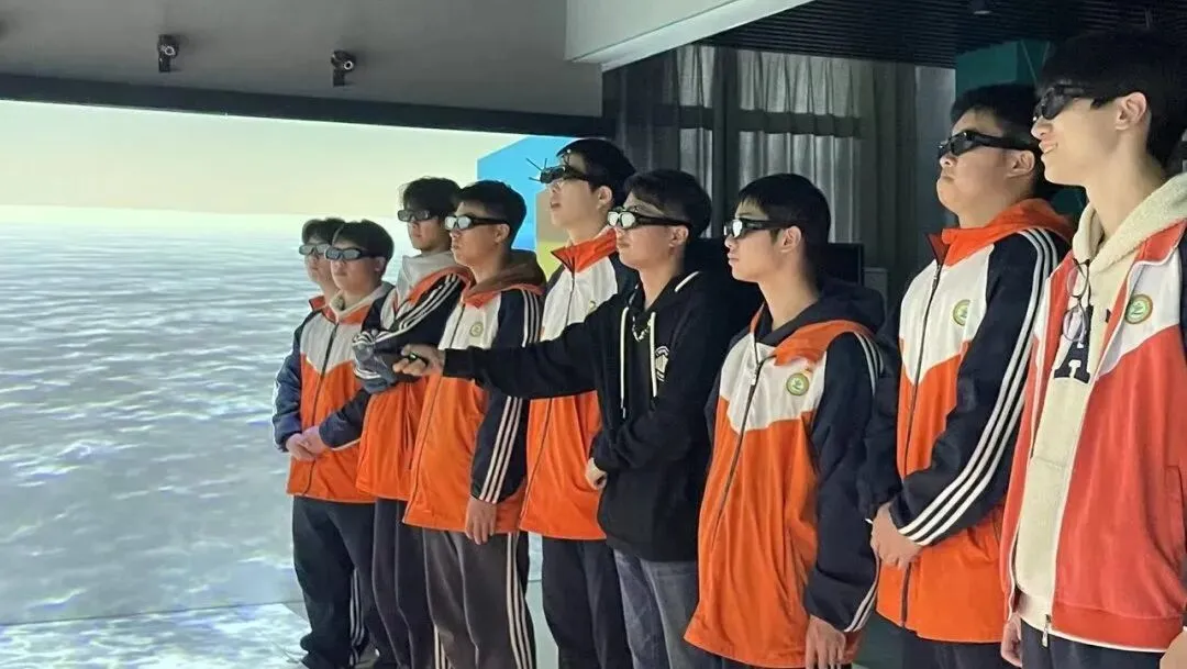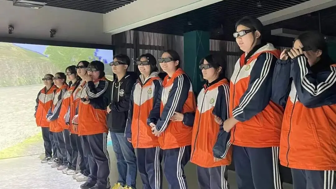 在学院的VR体验区,同学们迎来了本次研学最具科技感的环节——沉浸式虚拟场景体验。在老师的引导下,大家戴上3D眼镜,瞬间“穿越”到截然不同的数字世界从静谧古村到惊险秘境,VR技术让抽象的会展场景变得可感可知,也让同学们真切感受到“数字+创意”如何为会展行业注入全新活力。