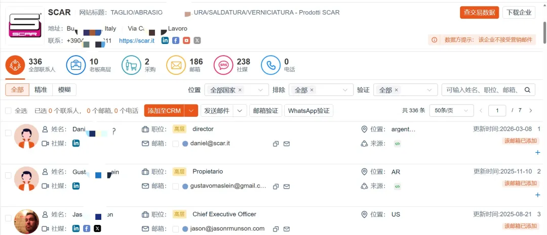 海外社媒触达:可以清晰了解目标客户的海外社媒账号的联系方式,方便进一步开发客户。