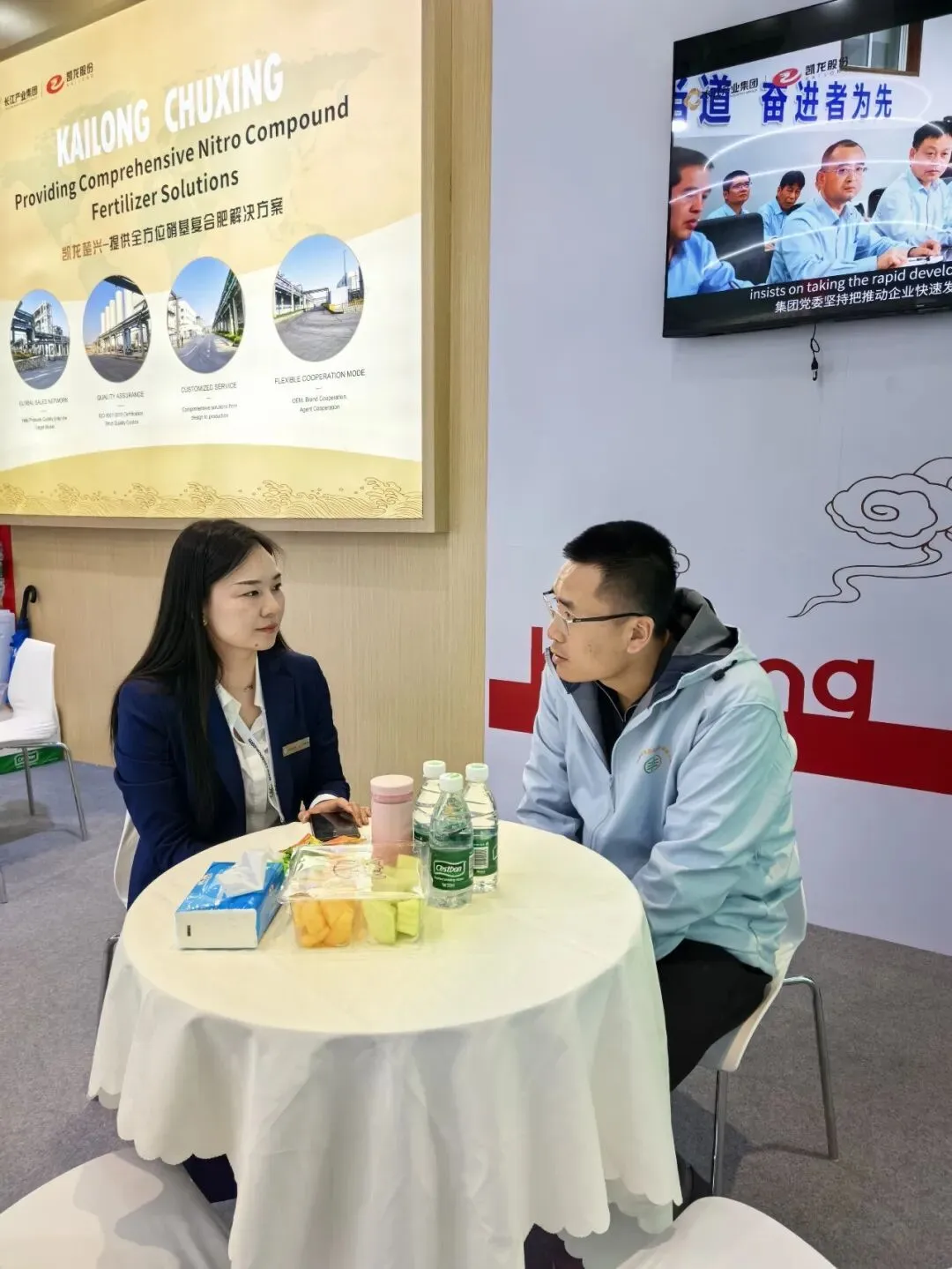 作为全球农化领域具有重要影响力的专业展会之一,CAC汇聚了众多行业企业与专业买家。展会期间,凯龙楚兴国贸展位人流密集,现场咨询与洽谈氛围热烈。公司重点展示了硝酸铵及硝基复合肥等系列产品,通过实物展示与专业讲解相结合的方式,全面呈现企业在原材料供应、生产制造及国际贸易服务方面的综合优势。